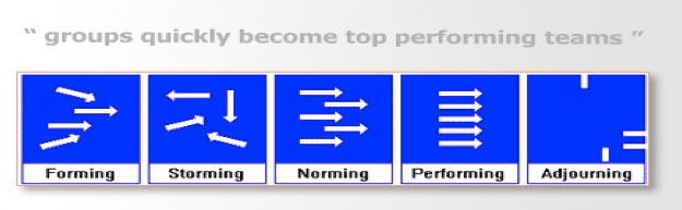 As a result the team moves through the stages of group development much quicker. Because ZING creates a group container through the computer interface, there is less need for forming and storming within the group. Ideas are quickly expressed from each wireless keyboard onto a team space (a single large, shared screen). There is no need to negotiate norms. The computer interface creates the rules of engagement such that the primary focus is not on group dynamics, but on interfacing with the meeting purpose and content. The magic of ideas appearing on the team space (single large screen) refocuses the participants into creating an exciting and shared, compelling picture.